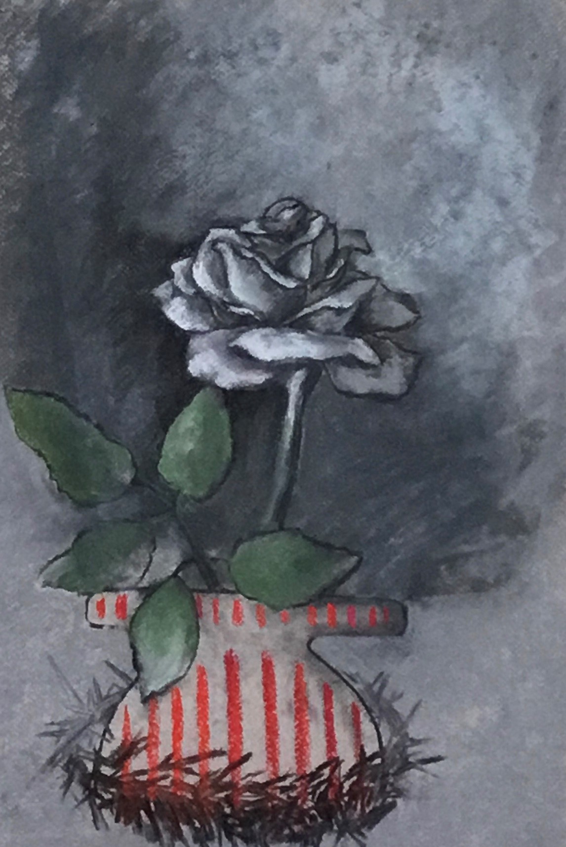 ART FOR SALE "Conflict Rose" An original mixed media drawing on archival paper. 10 x 12 inches. Unframed £75.00...unavailable at the moment...