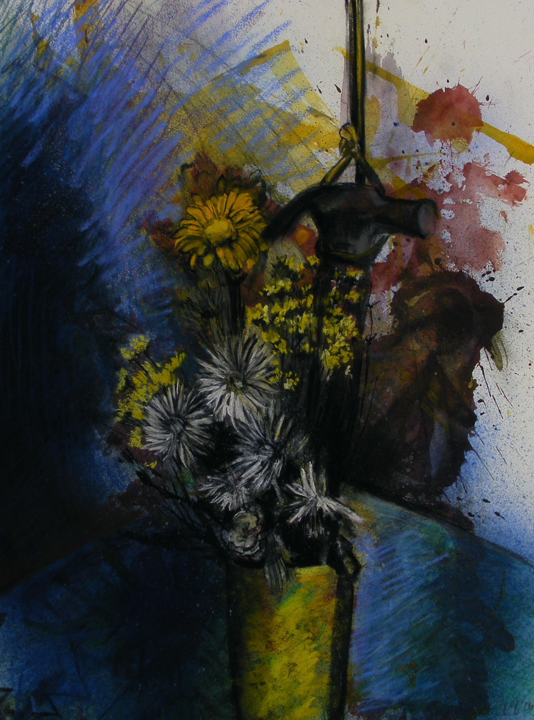 ON ABORTION "Hammer Suspended" Mixed media drawing on paper. A hammer can either be used to build or to destroy; the choice for its use is in our own hands and in the volition of our minds and hearts.
